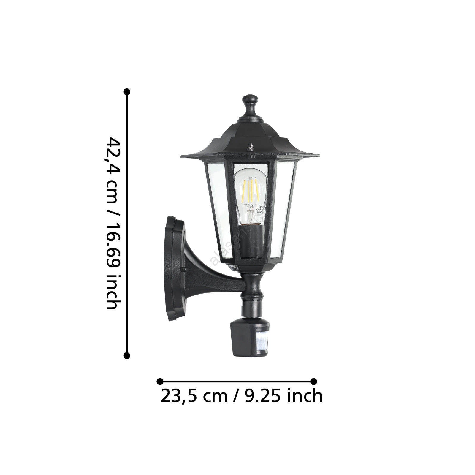 EGLO 22469 - Spoljašnje zidno svetlo sa senzorom LATERNA 1xE27/60W crno | Alasans