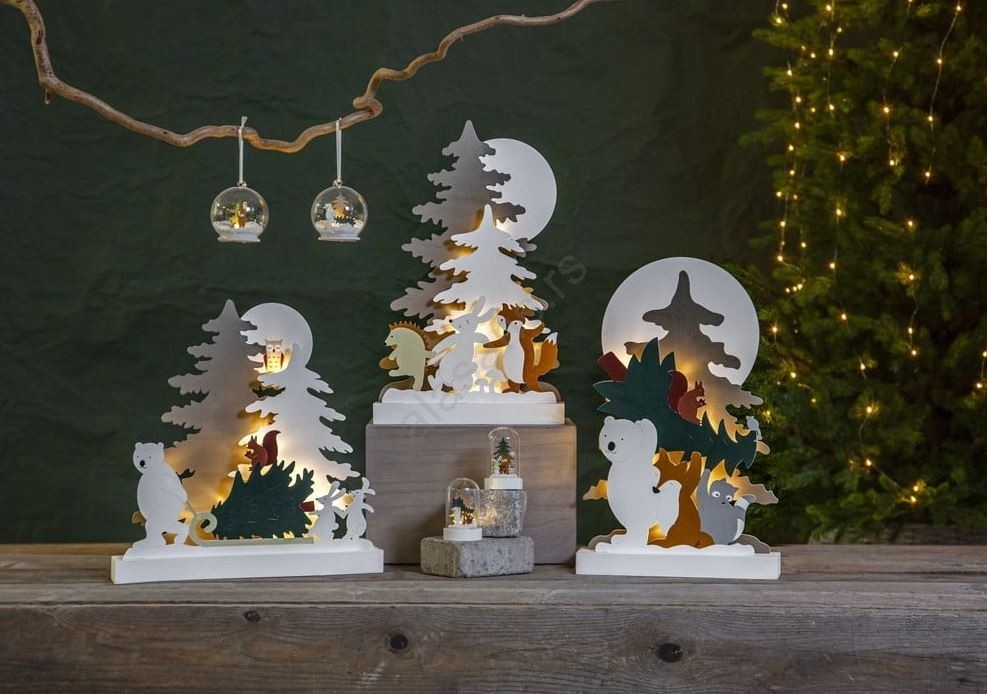 • Set od 2 LED božićne dekoracije izrađene od laserski isečenog drveta.