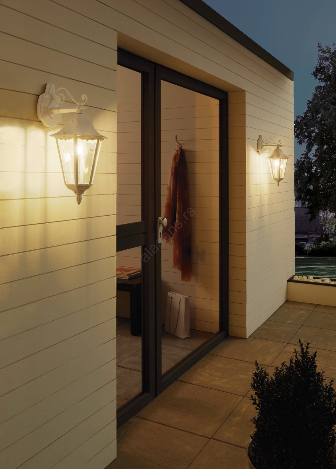 • Spoljna zidna lampa koristi jednu klasičnu sijalicu sa grlom E27 maksimalne snage 60W, koju je moguće zameniti energetski štednom ili LED sijalicom.