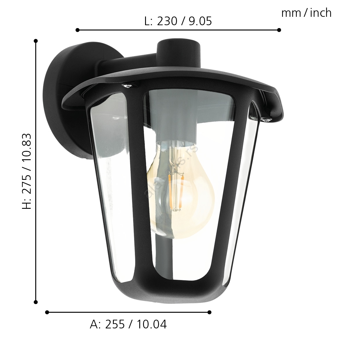 Eglo 98121 - Spoljašnje zidno svetlo MONREALE 1xE27/60W/230V crno IP44 | Alasans