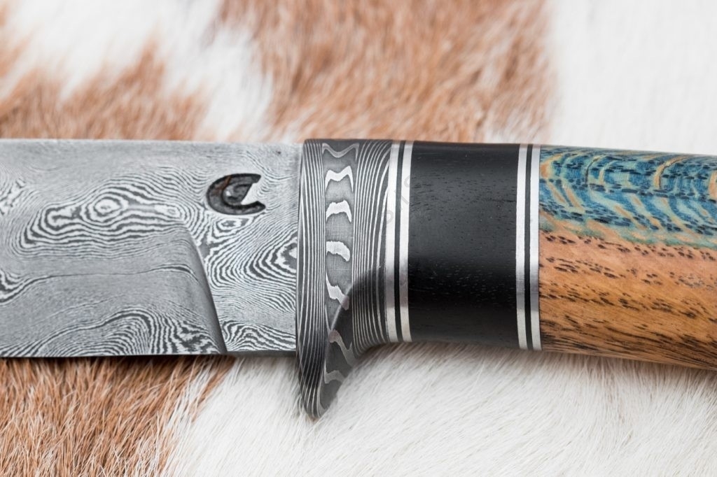 Jiří Čurda - ekskluzivni damaški nož, hrast/ebenovina.