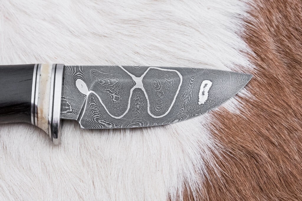 • Sečivo je kovan iz damaškovog čelika koji formira dekorativne mozaike.
