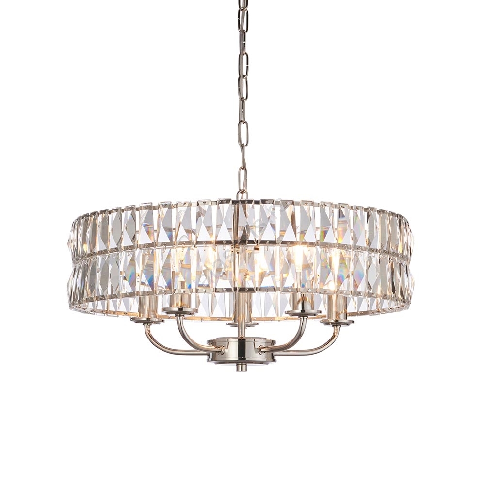 Endon 104467 - Luster na lancu CLIFTON 5xE14/6W/230V prečnik 50,5 cm sjajni hrom/prozirno