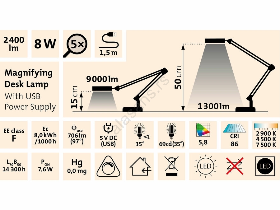 Extol - LED prigušiva stona lampa sa lupom LED/8W/5V 2900/4500/7500K bela | Svijet svjetiljki