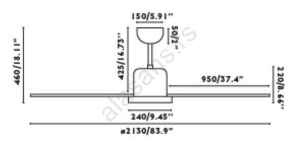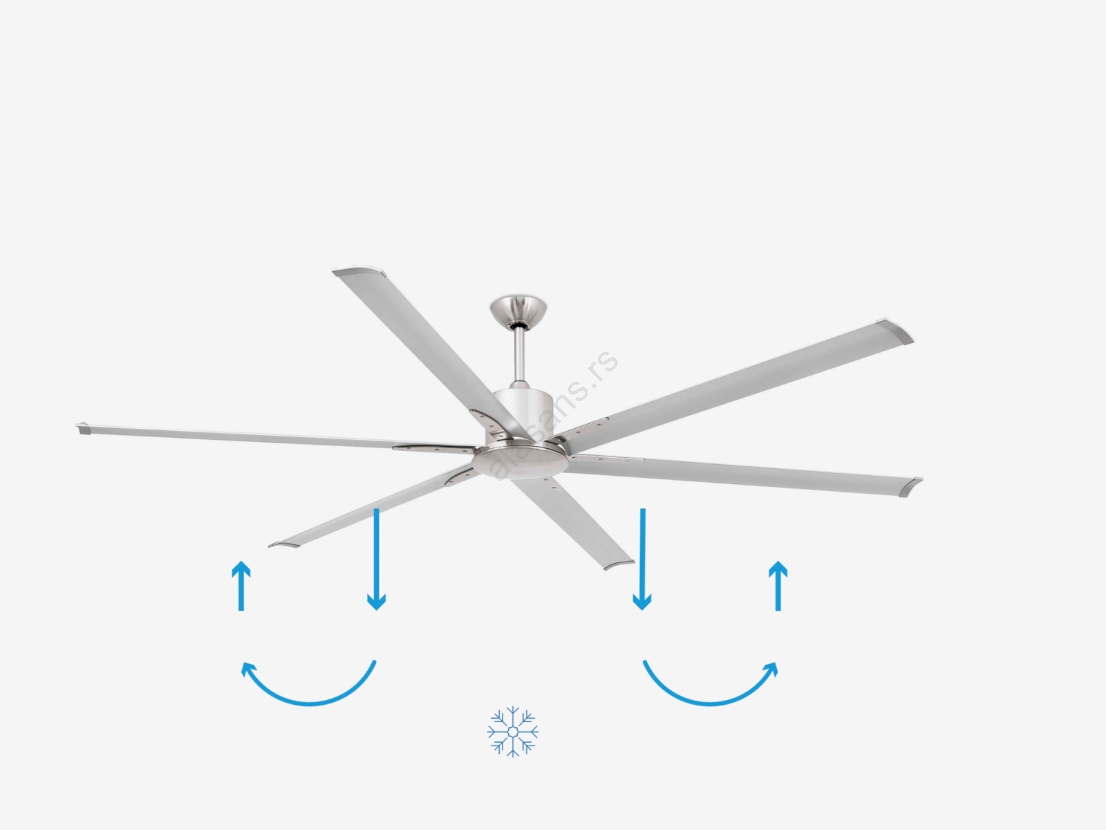Veliki plafonski ventilator sa 6 aerodinamičnih lopatica i revolucionarnim dizajnom.