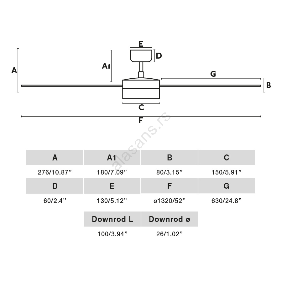Lopatice ventilatora su obostrane (mat bela, jasen).