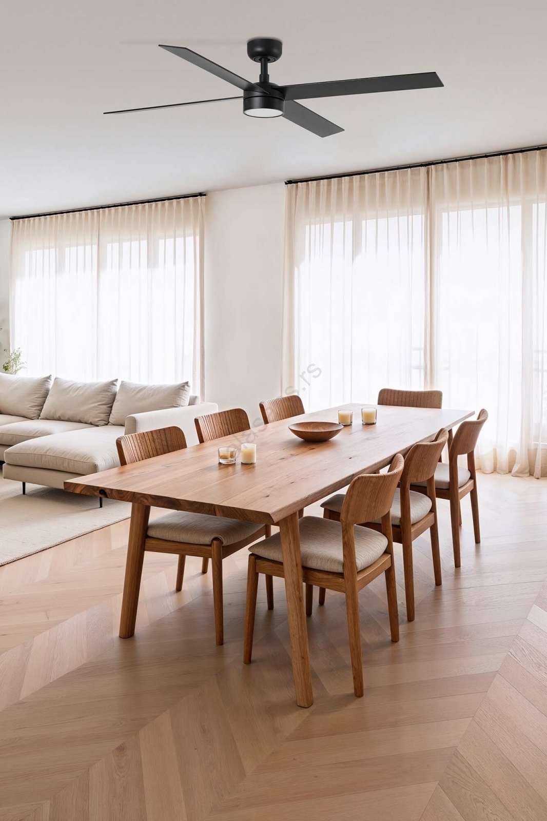 Moderan plafonski ventilator sa istosmernim motorom.