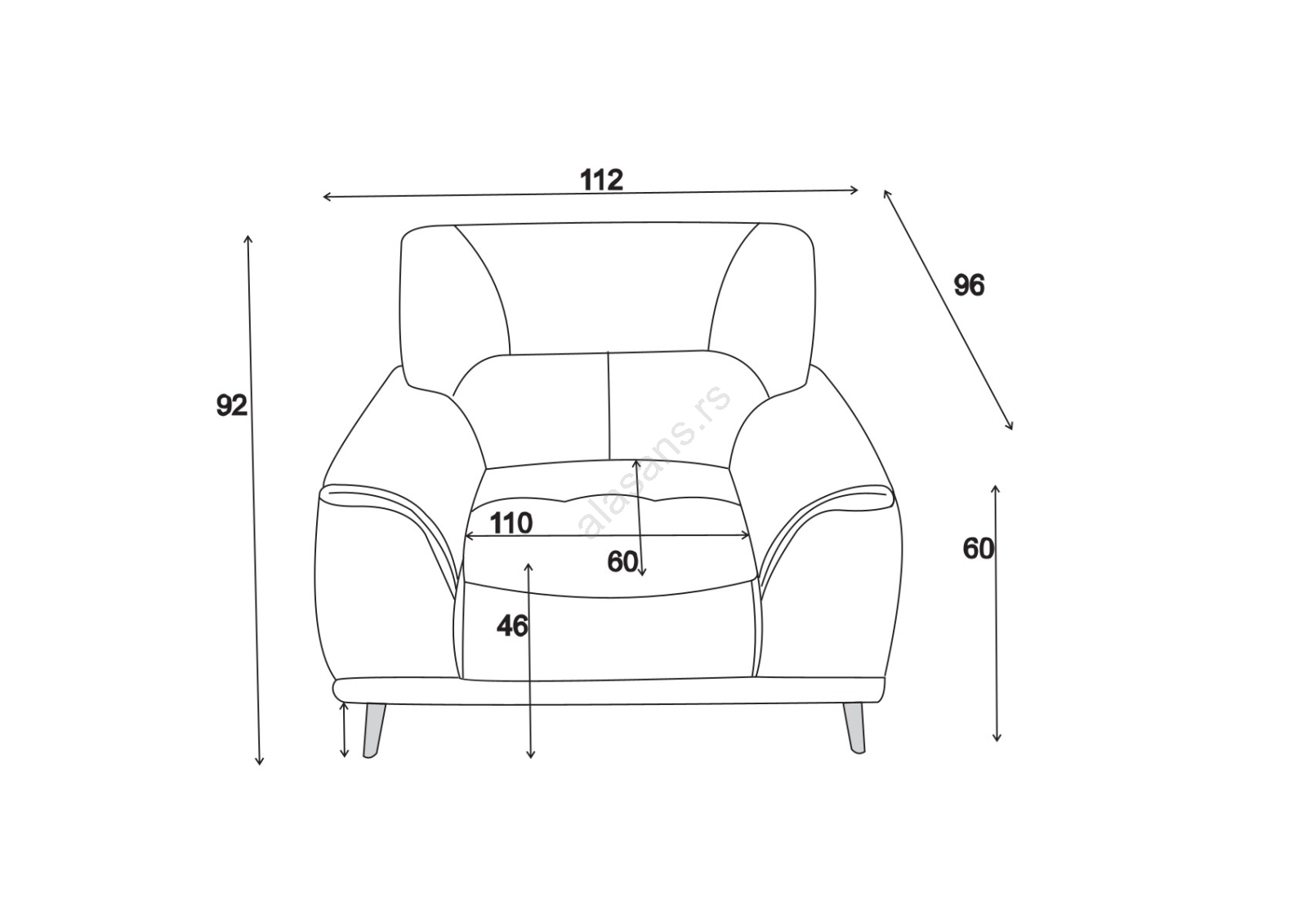 • Sa visinom od 92 cm, udobnom visinom sedišta od 46 cm i dubinom 60 cm pruža ergonomsko i relaksirajuće sedenje.