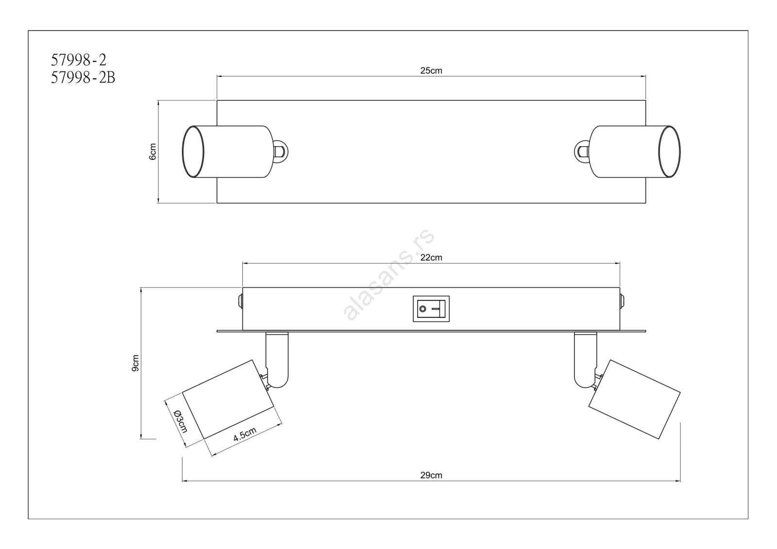 Globo 57998-2 - Reflektorska svetiljka DREW 2xGU10/35W/230V crna | Alasans