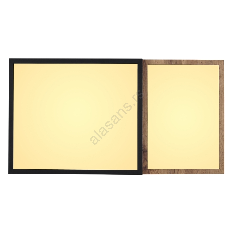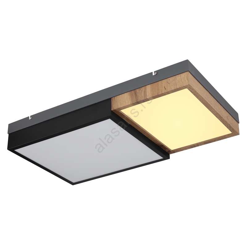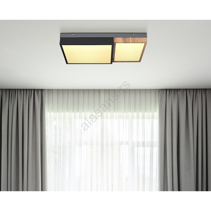 • Plafonsko svetlo ima mat-sivu metalnu bazu, crni matirani metalni okvir, MDF sa dekorom drveta i opalni plastični difuzor, što zajedno daje moderan, a ipak topao i prijatan izgled enterijera.