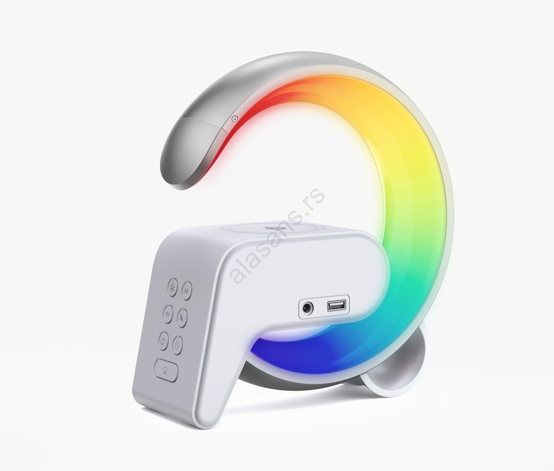 LED RGB prigušiva stona lampa sa budilnikom i Qi punjenjem 30W/230V srebrna