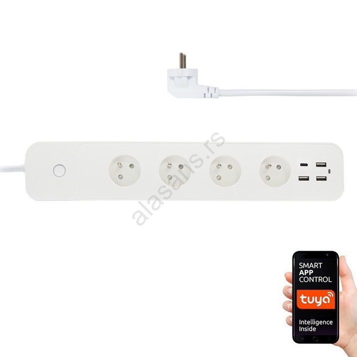 Immax NEO 07771L - Produžni kabl NEO LITE Smart 4 AC utičnice + 3x USB + 1x USB-C Wi-Fi Tuya | Alasa