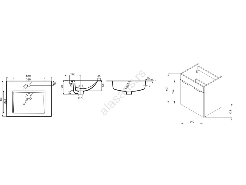 • Ovaj kupatiljski ormarić isporučuje se sa keramičkim umivaonikom.