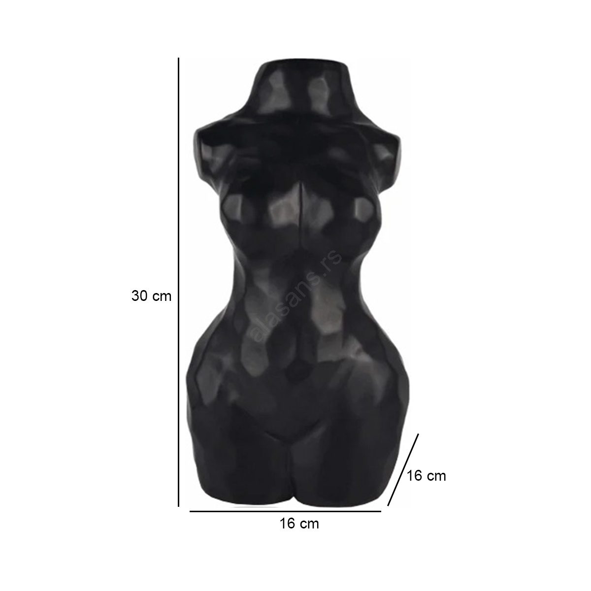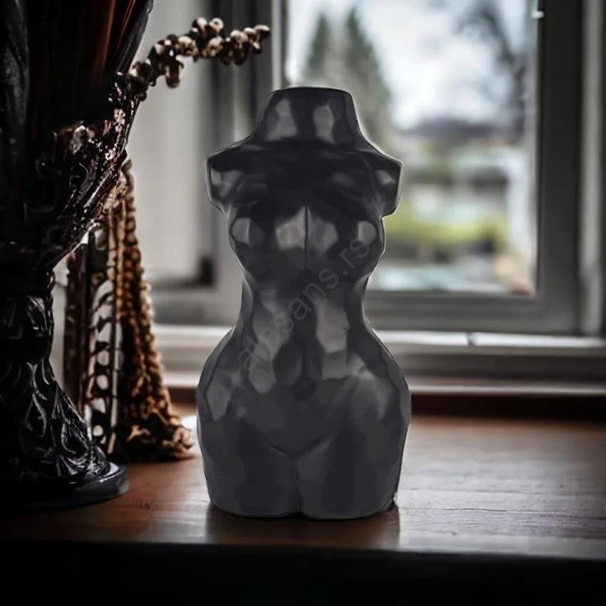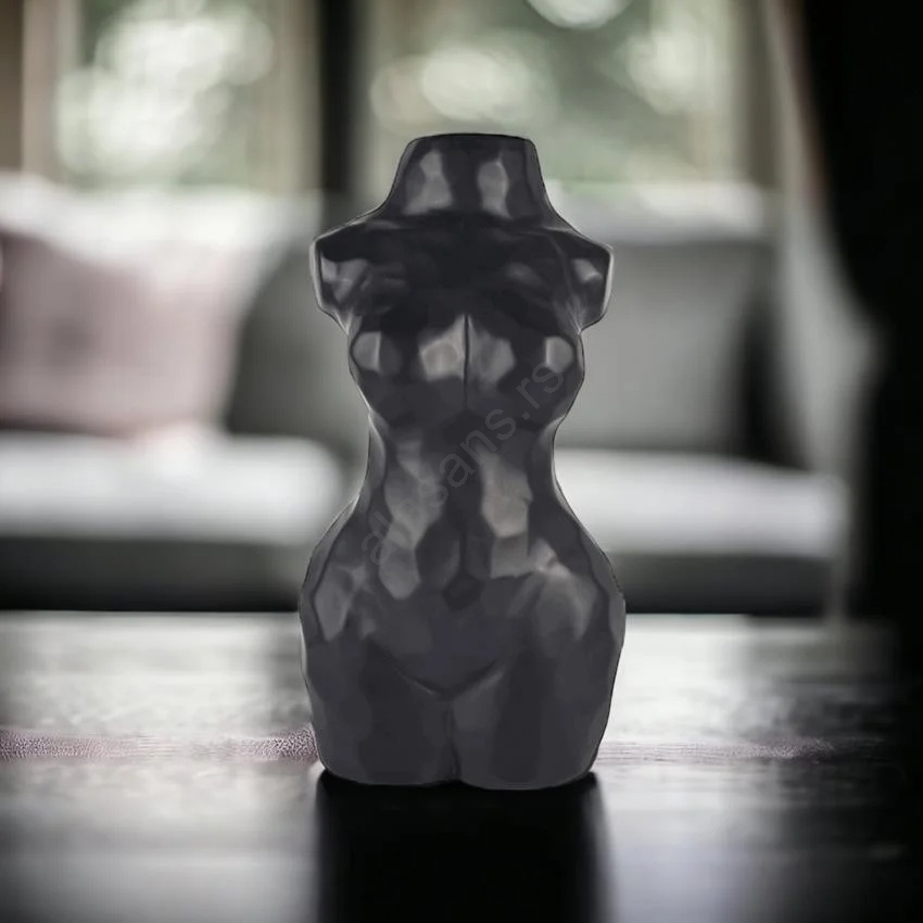 • Dekorativna vaza za cveće u obliku ženske figure u crnoj boji.