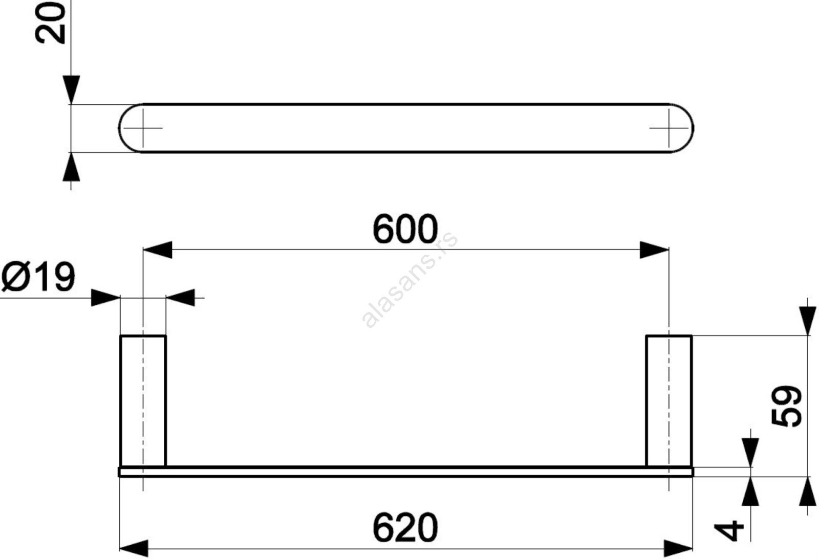 KFA Armatura 864-027-00 - Zidni držač za peškire 62 cm, sjajni hrom | Lampomanija