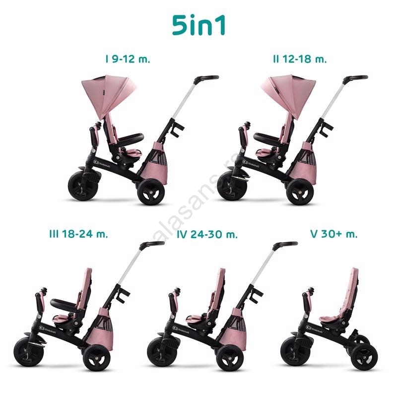 KINDERKRAFT - Dečiji tricikl 5 u 1 EASYTWIST ružičasta/crna | Svijet svjetiljki