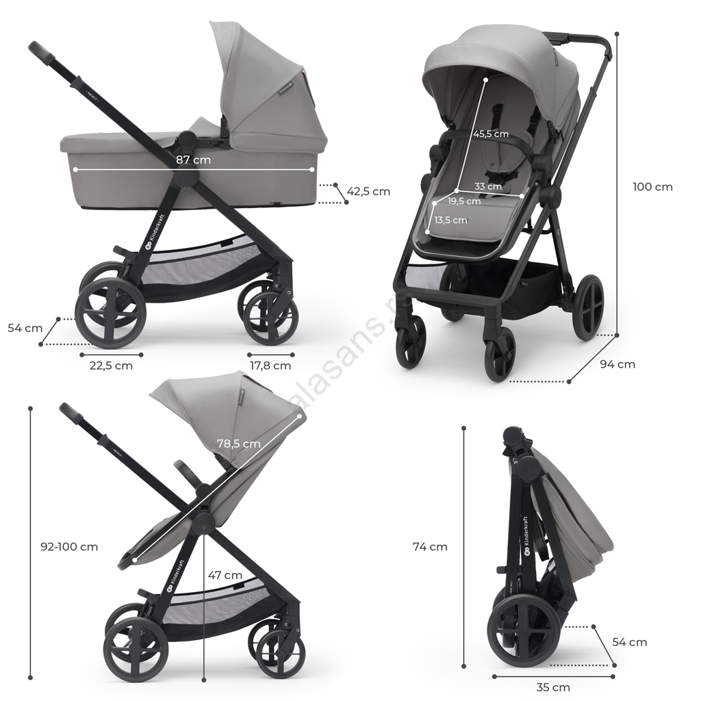 KINDERKRAFT - Kombinovana kolica 4u1 NEWLY Classic grey + dečije autosedište MINK PRO | Alasans
