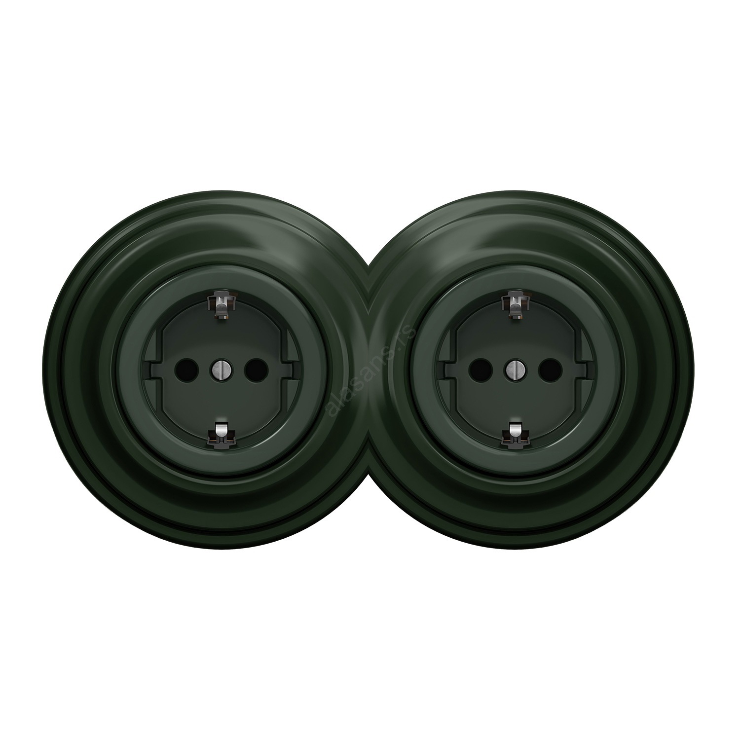 Kliklap - Dvostruka retro kućna utičnica sa okvirom SCHUKO 230V, zelena | Alasans