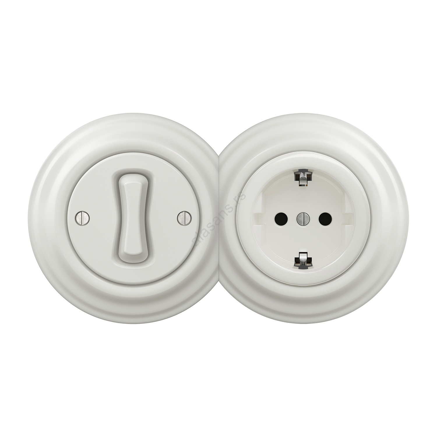 Kliklap - Retro jednopolni prekidač br. 1 i SCHUKO utičnica 230V sa ramom, bela | Alasans