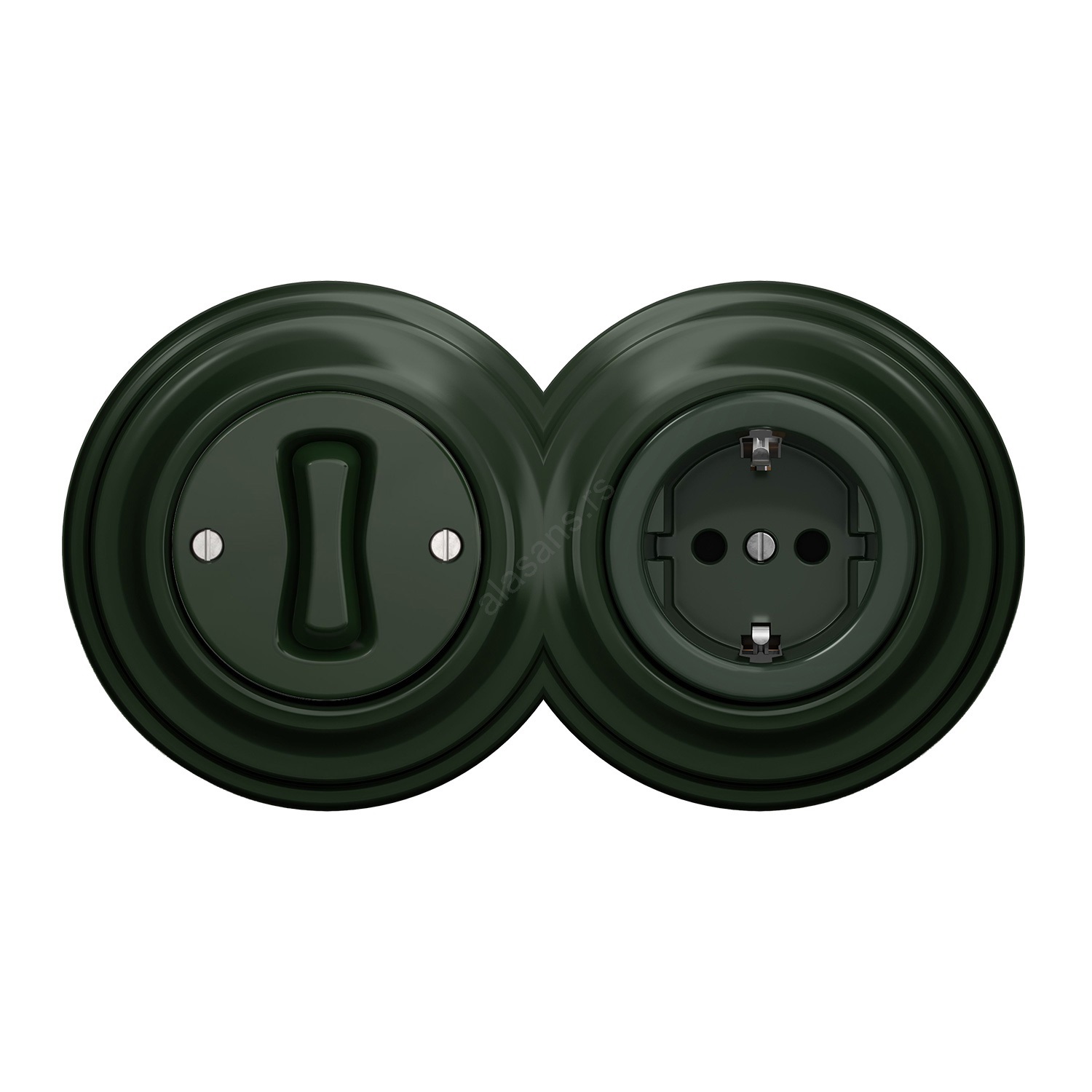 Kliklap - Retro jednopolni prekidač br. 1 i SCHUKO 230V utičnica sa okvirom, zelena