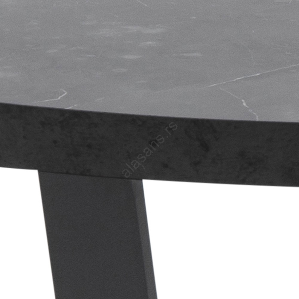 • Gornja ploča od melamina sa dezenom crnog mermera Izmir, podnožje od čelika, mat crno praškasto lakirano.