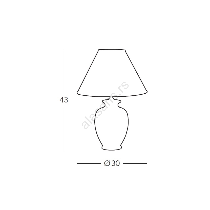 • Bazu krasi držač u sjajnoj zlatnoj boji i podstavljeni tkaninski abažur.