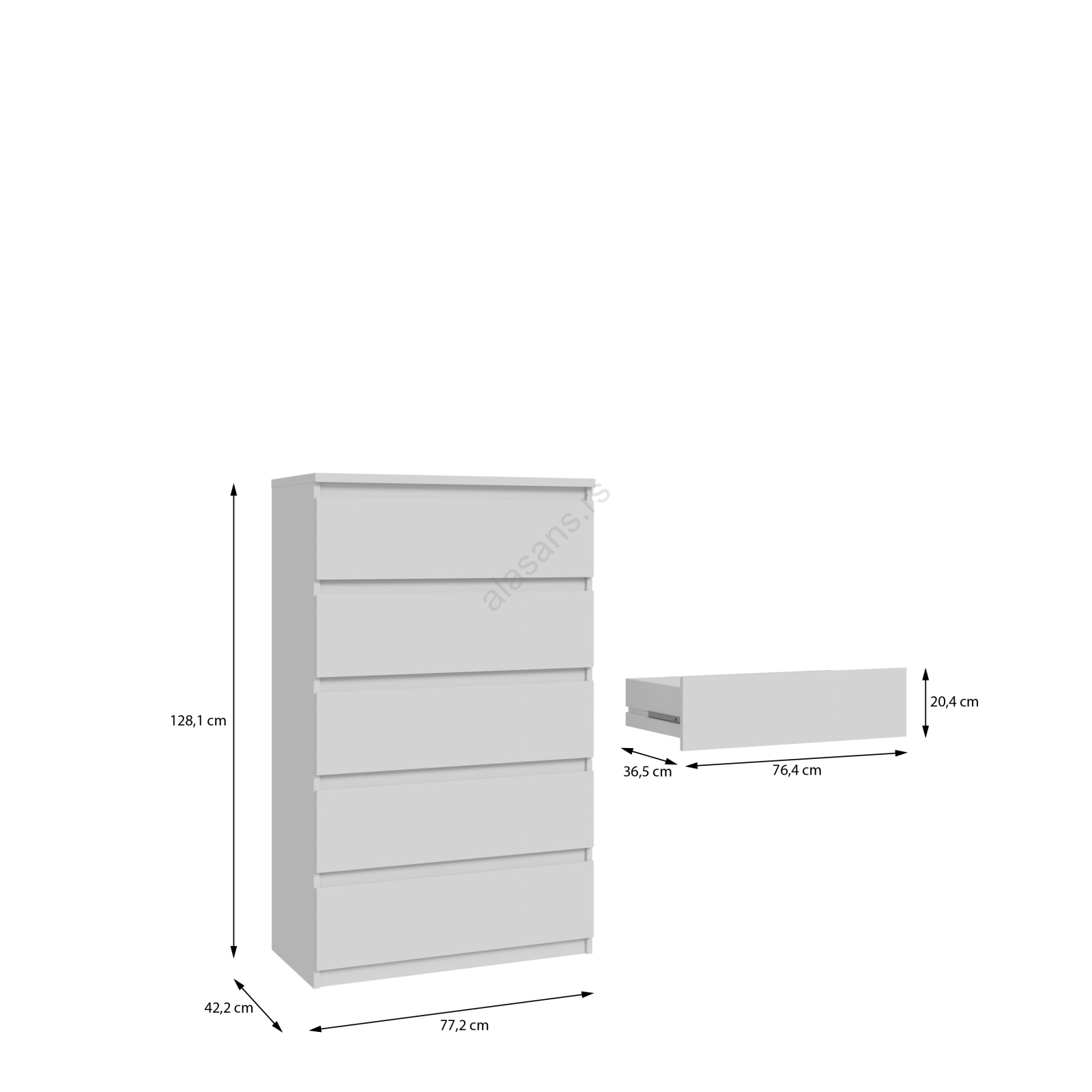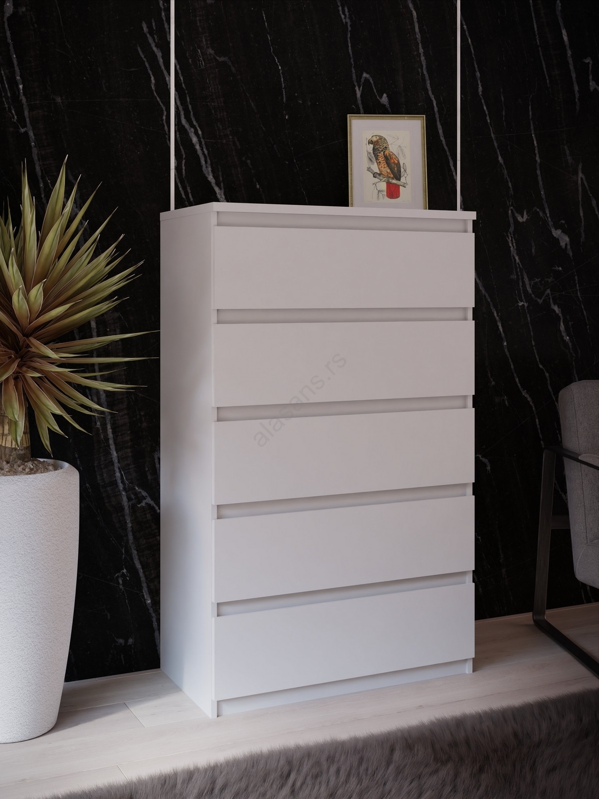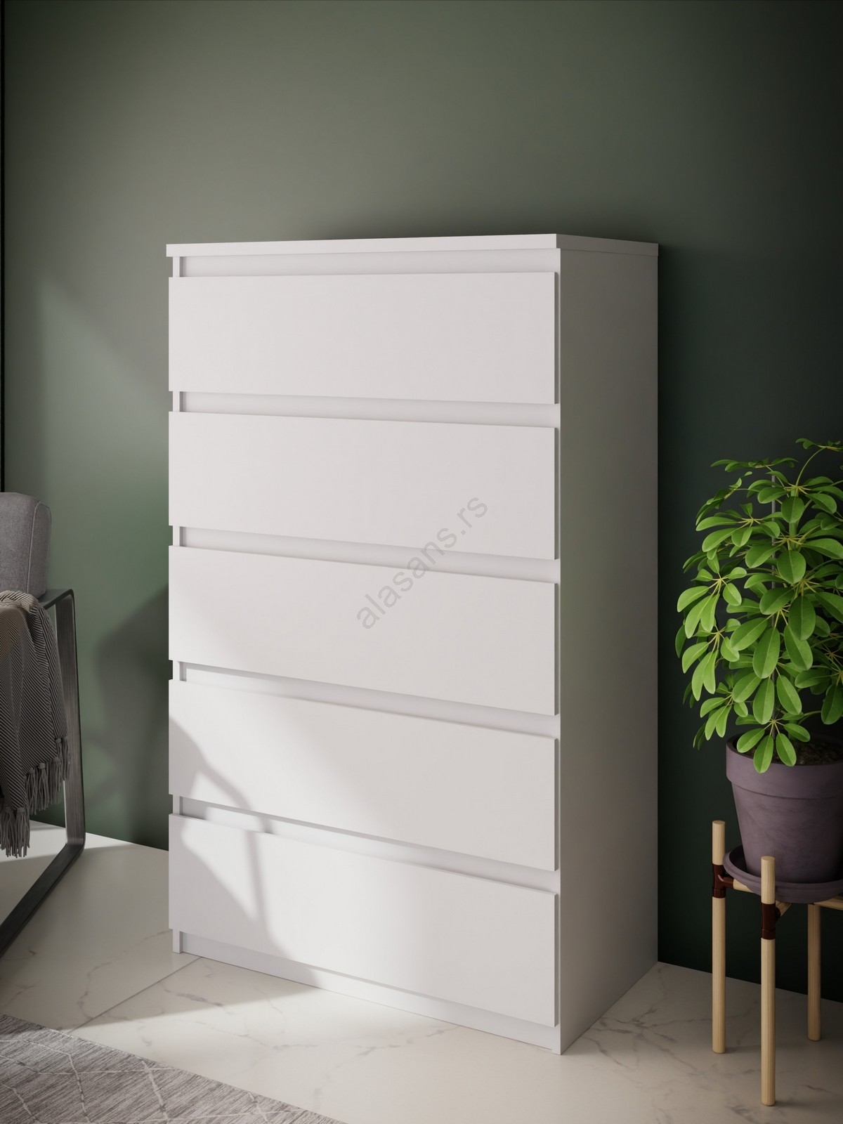 Komoda MAO sa fiokama, bela | Alasans