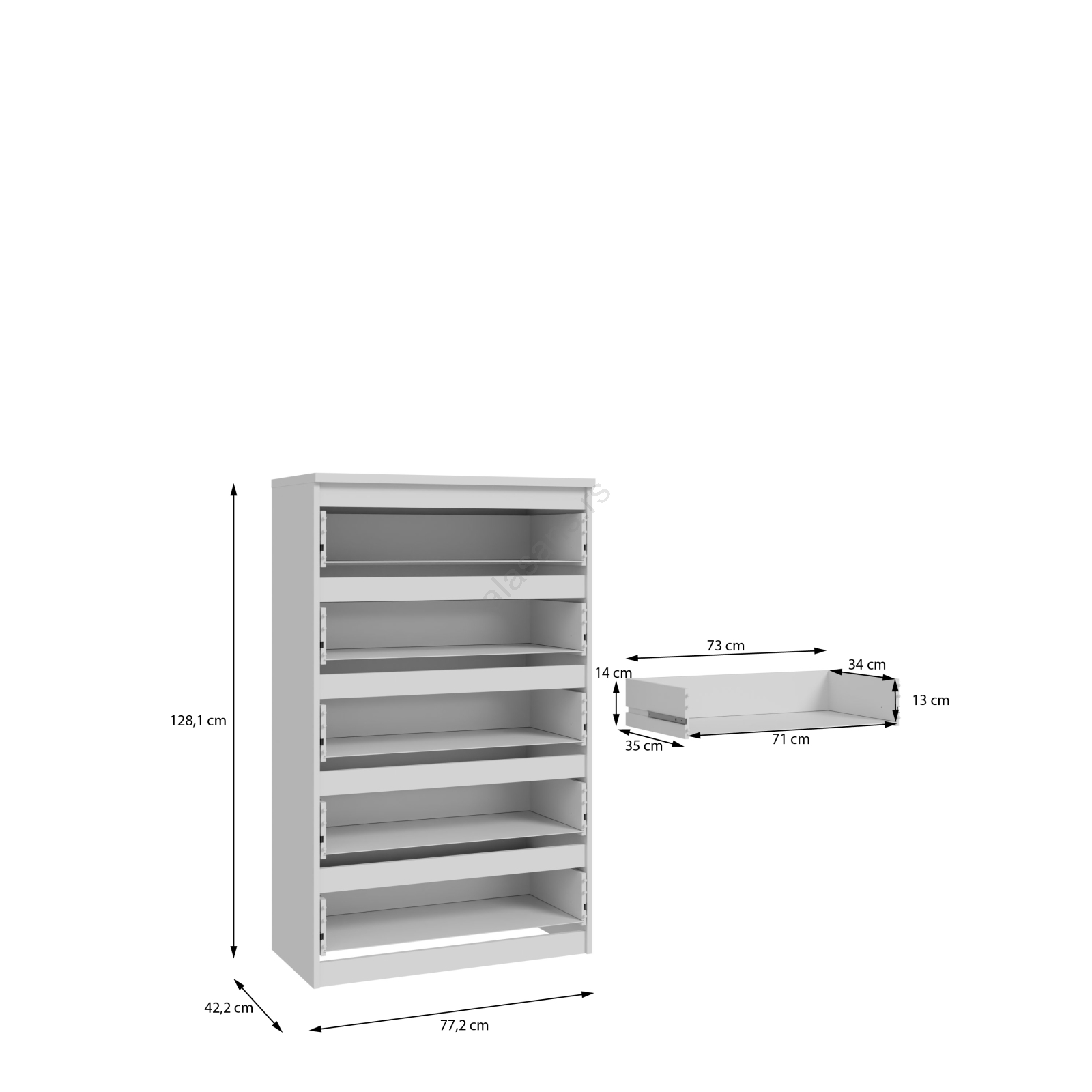 • Zahvaljujući fiokama nudi izdašan prostor za odlaganje i organizaciju predmeta za svakodnevnu upotrebu.