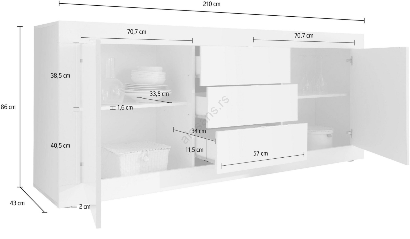 • Zahvaljujući ormarićima i fiokama, nudi prostran prostor za organizaciju predmeta za svakodnevnu upotrebu.