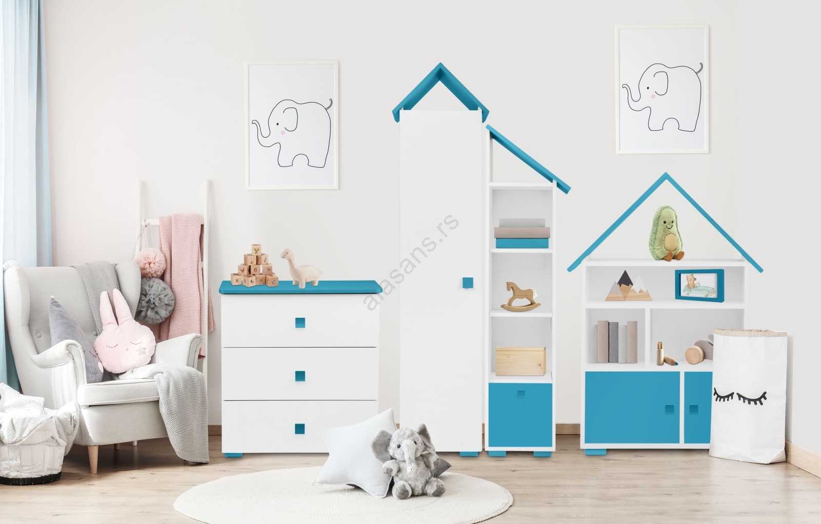 • Promišljen prostor za odlaganje omogućava da dečija soba ostane uredna i čista - puna igračaka, odeće, knjiga i sitnih predmeta.