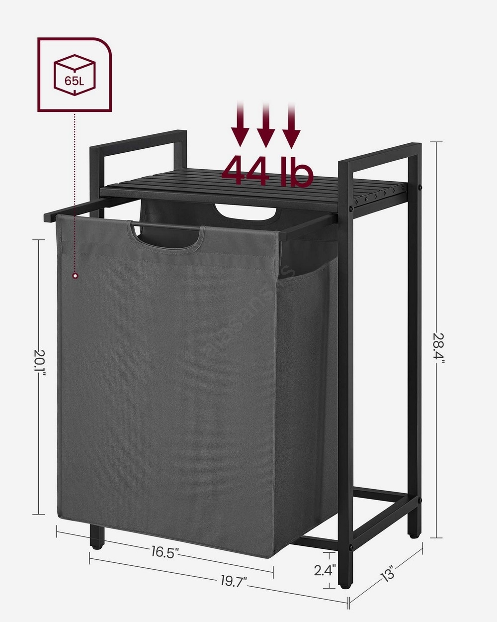 • 1 vreća, 1 polica – Spremite veš u platnenu vreću (65 l) i smestite deterdžente, omekšivač i ostale potrepštine na policu iznad.