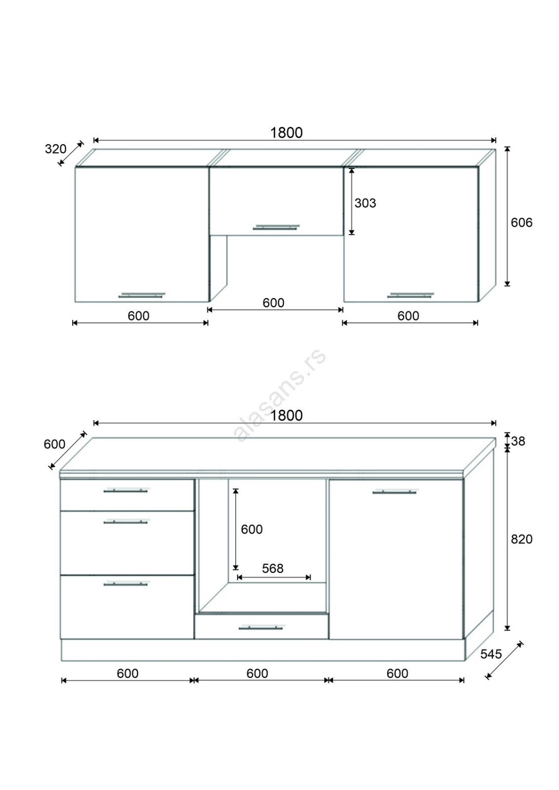 • Raspored ormarića je modularan, kuhinju možete prilagoditi prema sopstvenim željama.