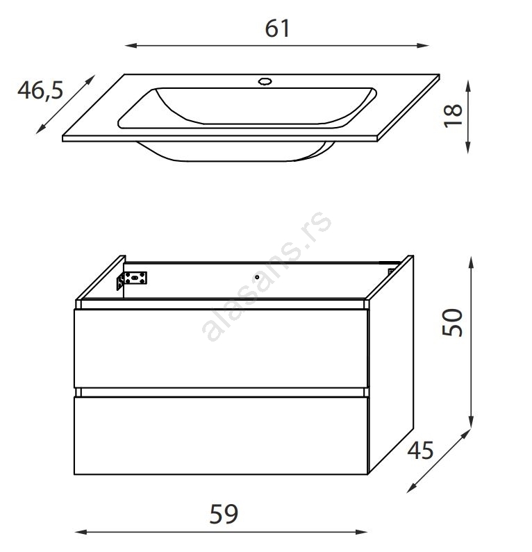 Kupatilski ormarić sa umivaonikom CONOR 61 cm hrast/bela | Alasans