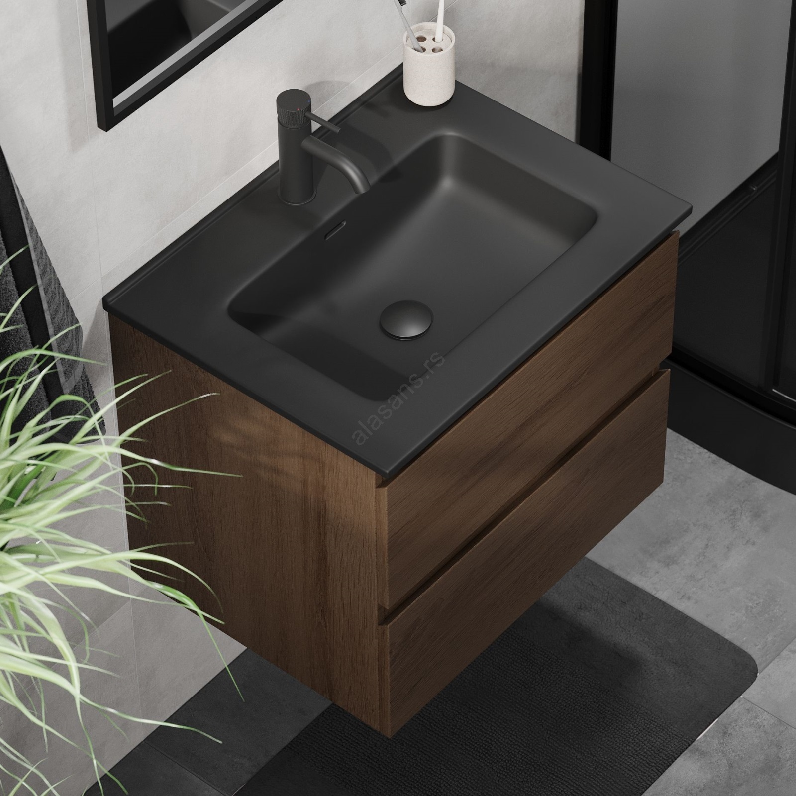 Kupatilski ormarić sa umivaonikom CONOR 61 cm orah/crna | Alasans