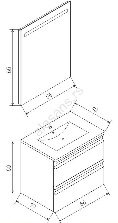 • Kupatilski ormarić sa umivaonikom VIGO + LED zidno ogledalo sa pozadinskim osvetljenjem LED/10W/230V IP44 u beloj boji
