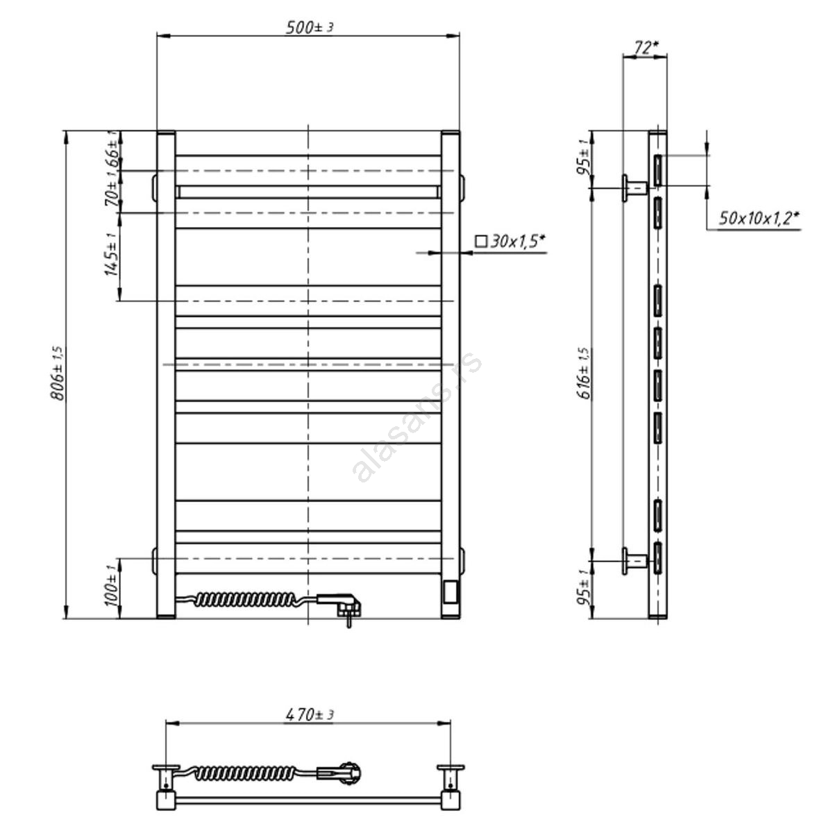 Kupatilski peškirni radijator sa termostatom LARGO 432W/230V, 80,6 cm, IP44, beo, levi, uglast