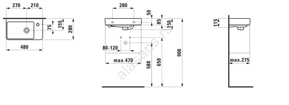 LAUFEN H8159540001041 - Zidni umivaonik PRO 48x28 cm keramika/bela | Alasans
