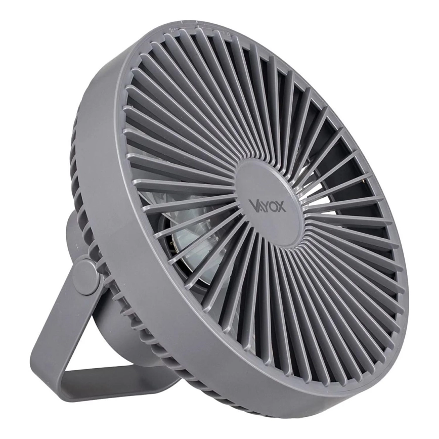 LED punjivi stoni ventilator sa LED osvetljenjem, 2W/5V USB, 2400 mAh, siva
