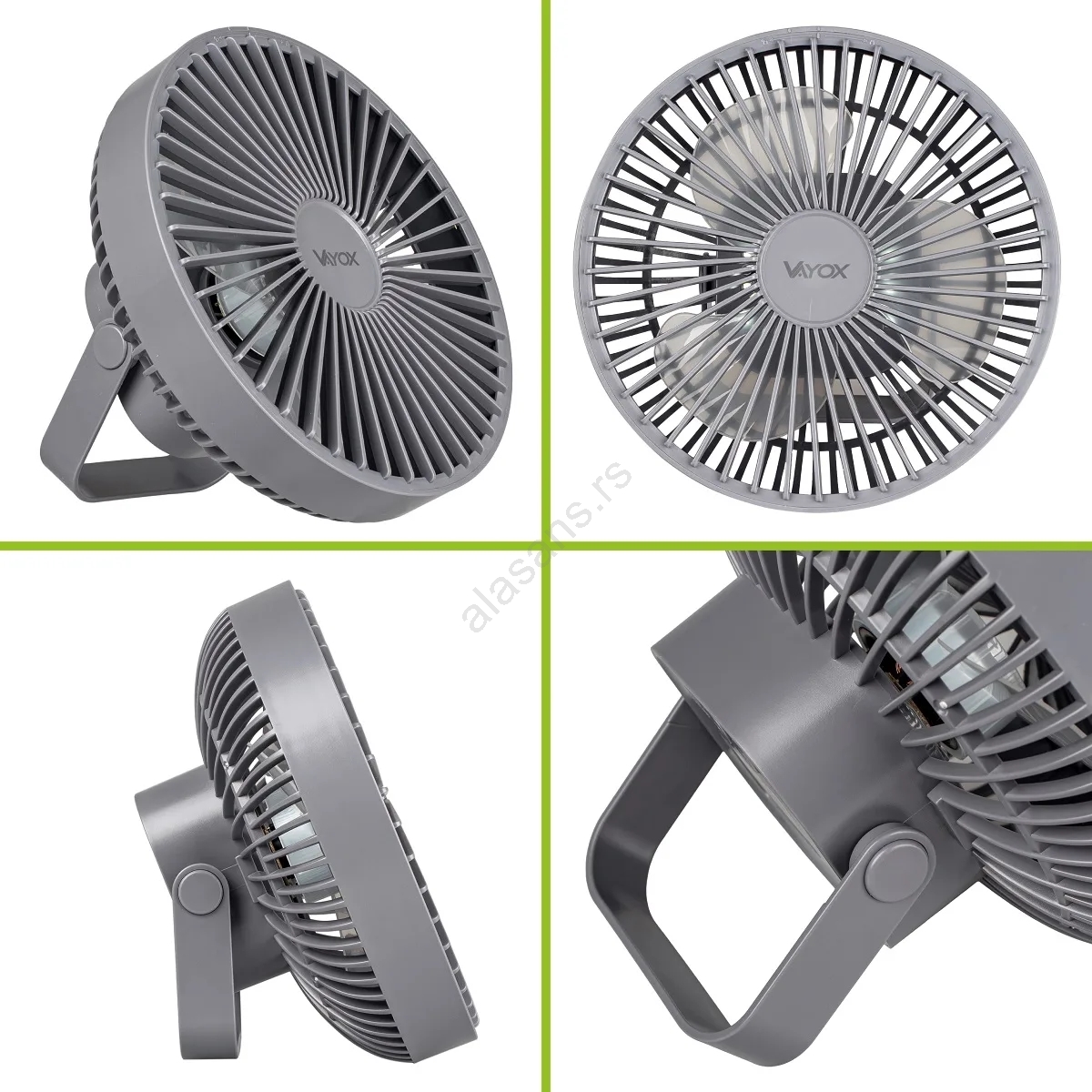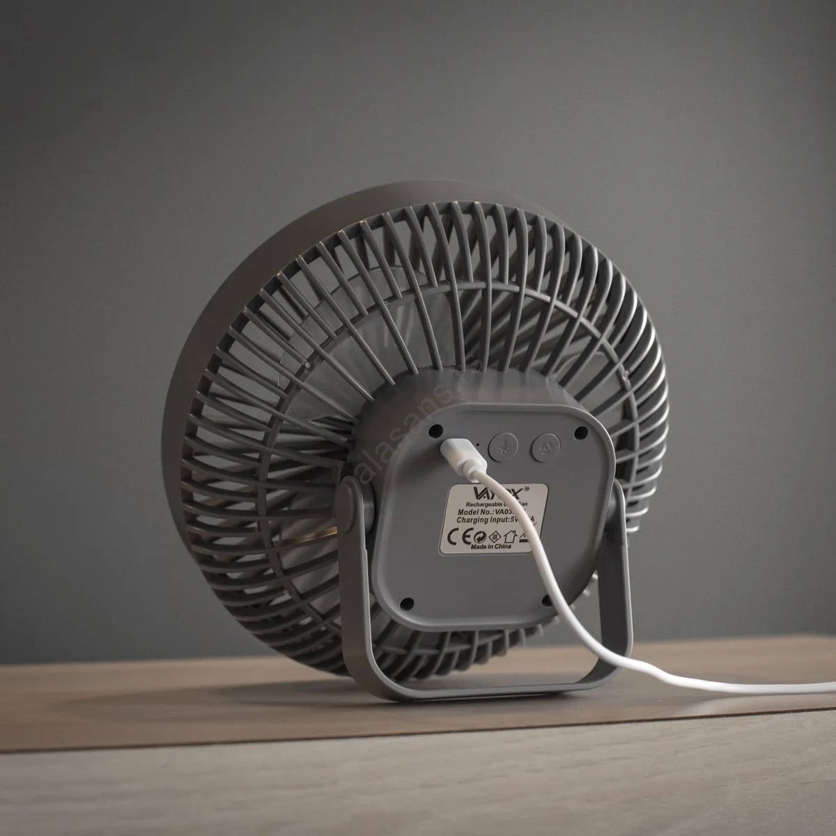 LED punjivi stoni ventilator sa LED osvetljenjem, 2W/5V USB, 2400 mAh, siva | Alasans