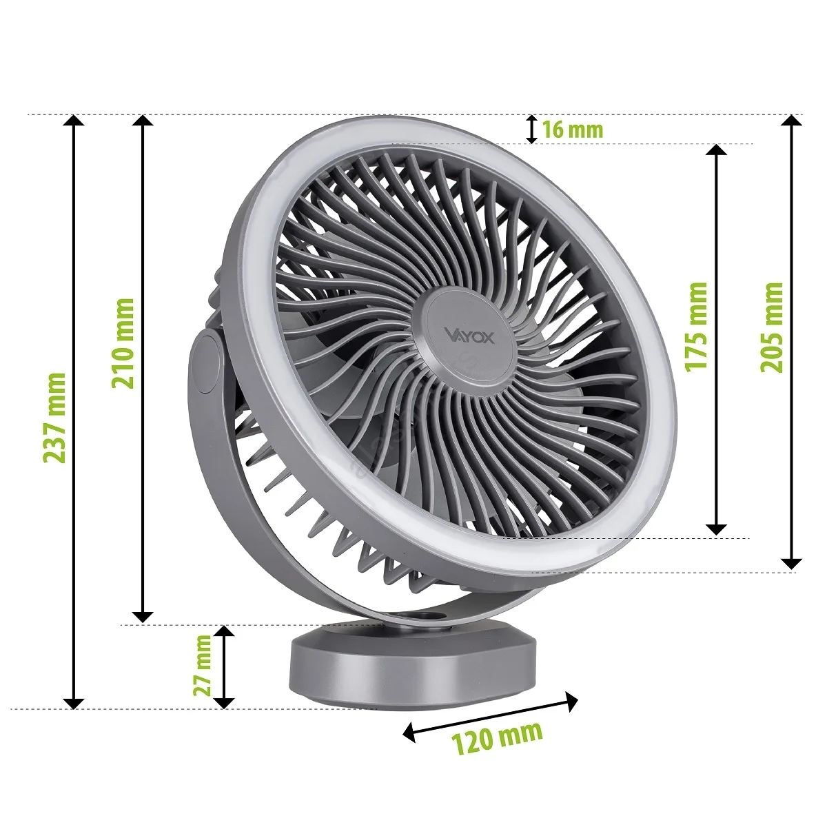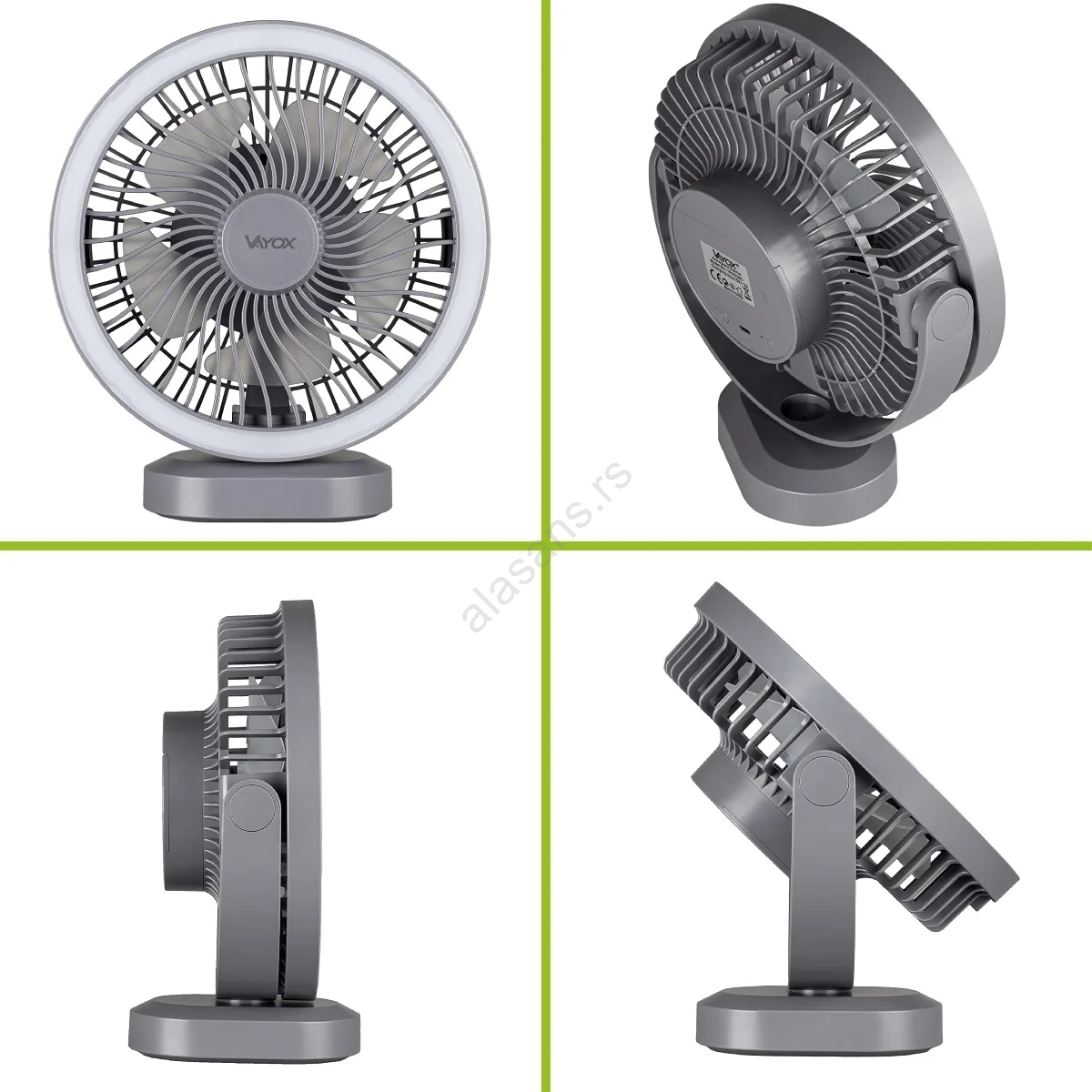 Punjivi LED stoni ventilator sa LED osvetljenjem LED/3W/5V USB 2400 mAh siva | Alasans