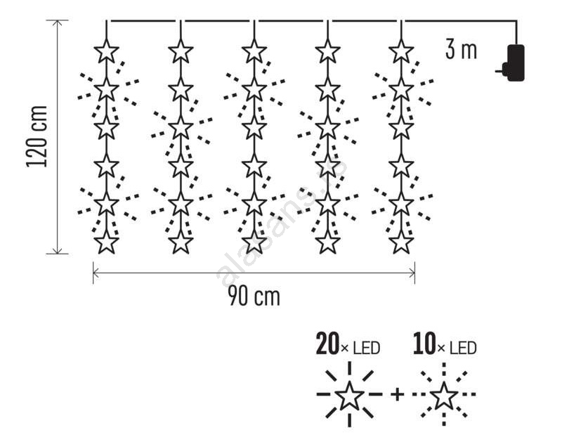 LED Božićni vanjski niz 30xLED/3,9m IP44 zvezde | Svijet svjetiljki