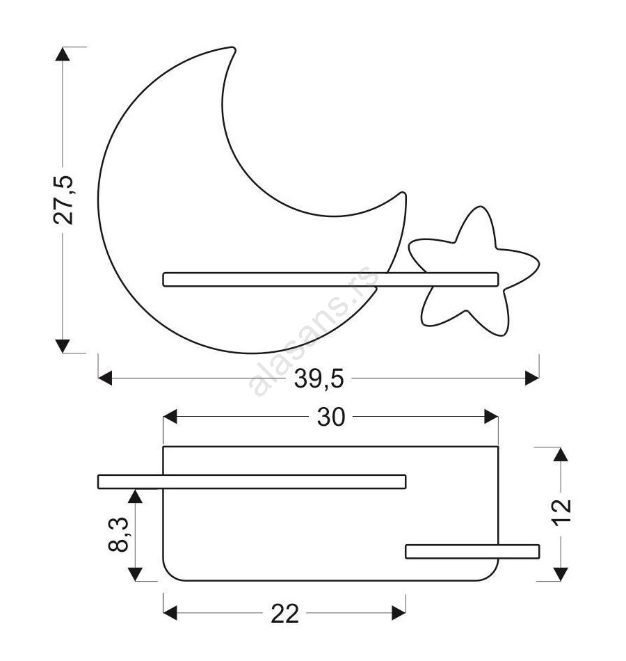 • LED dečije zidno svetlo sa policom MOON LED/5W/230V,