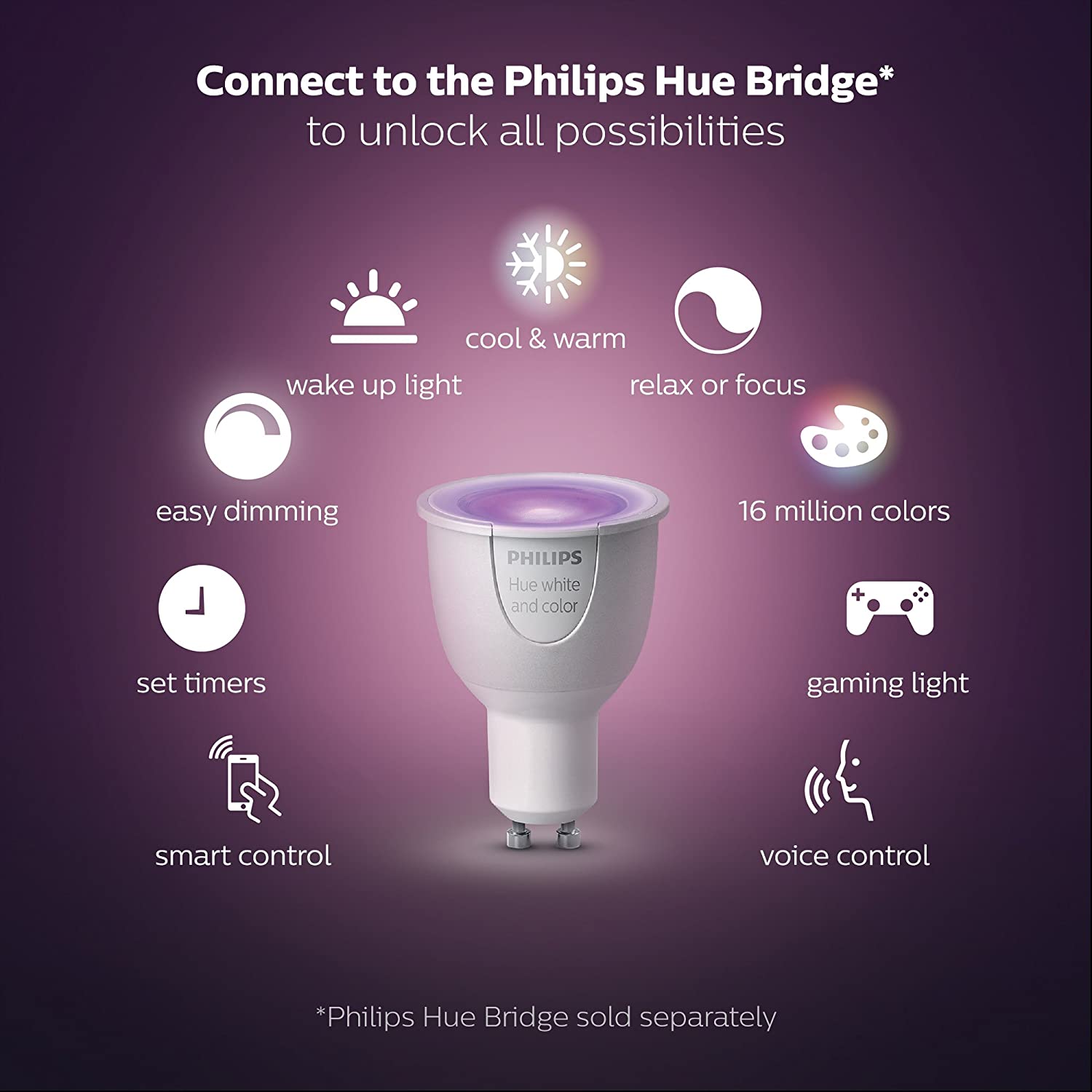 • Da biste povećali ograničenje povezanih uređaja, neophodno je imati Hue Bridge - može se kupiti ovde.