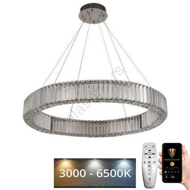 LED prigušiva kristalni luster na sajli LED/50W/230V 3000-6500K sjajni hrom + daljinski upravljač
