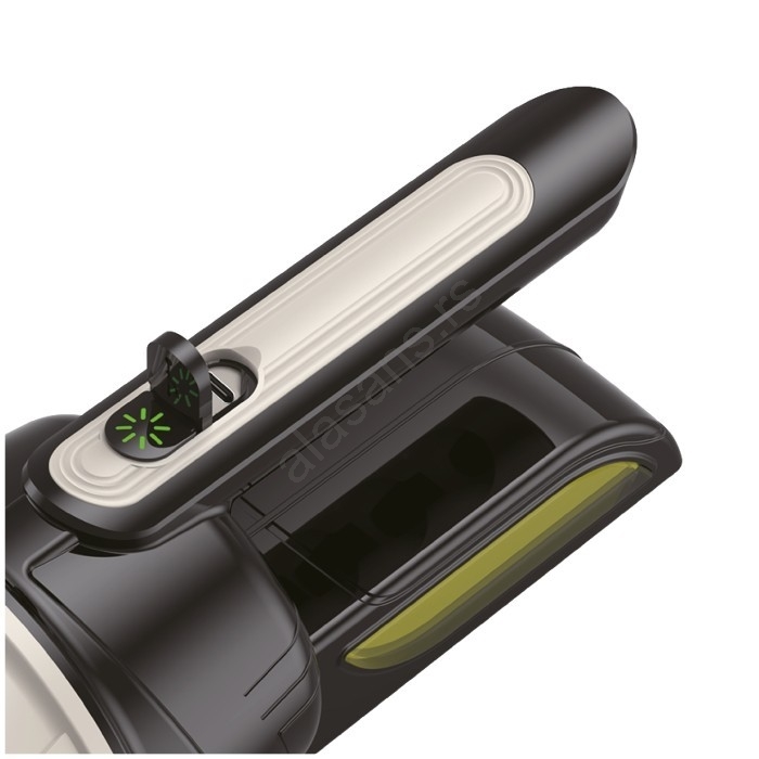 Kompaktna ručna lampa sa dva izvora svetla i tri režima rada.