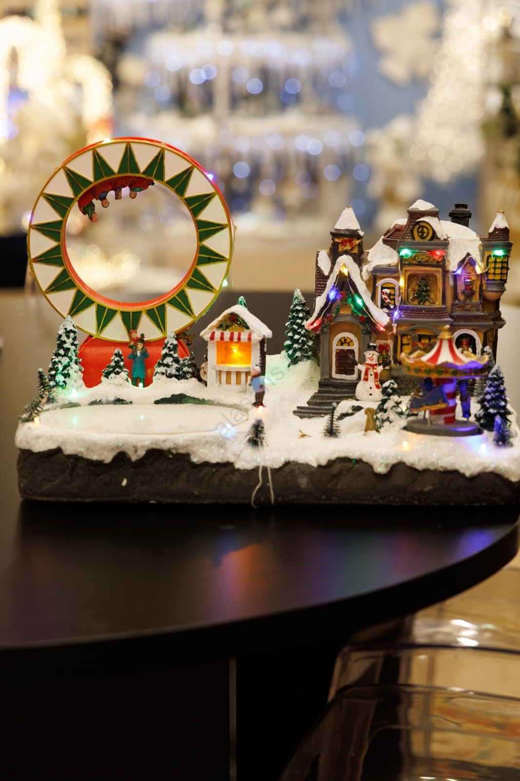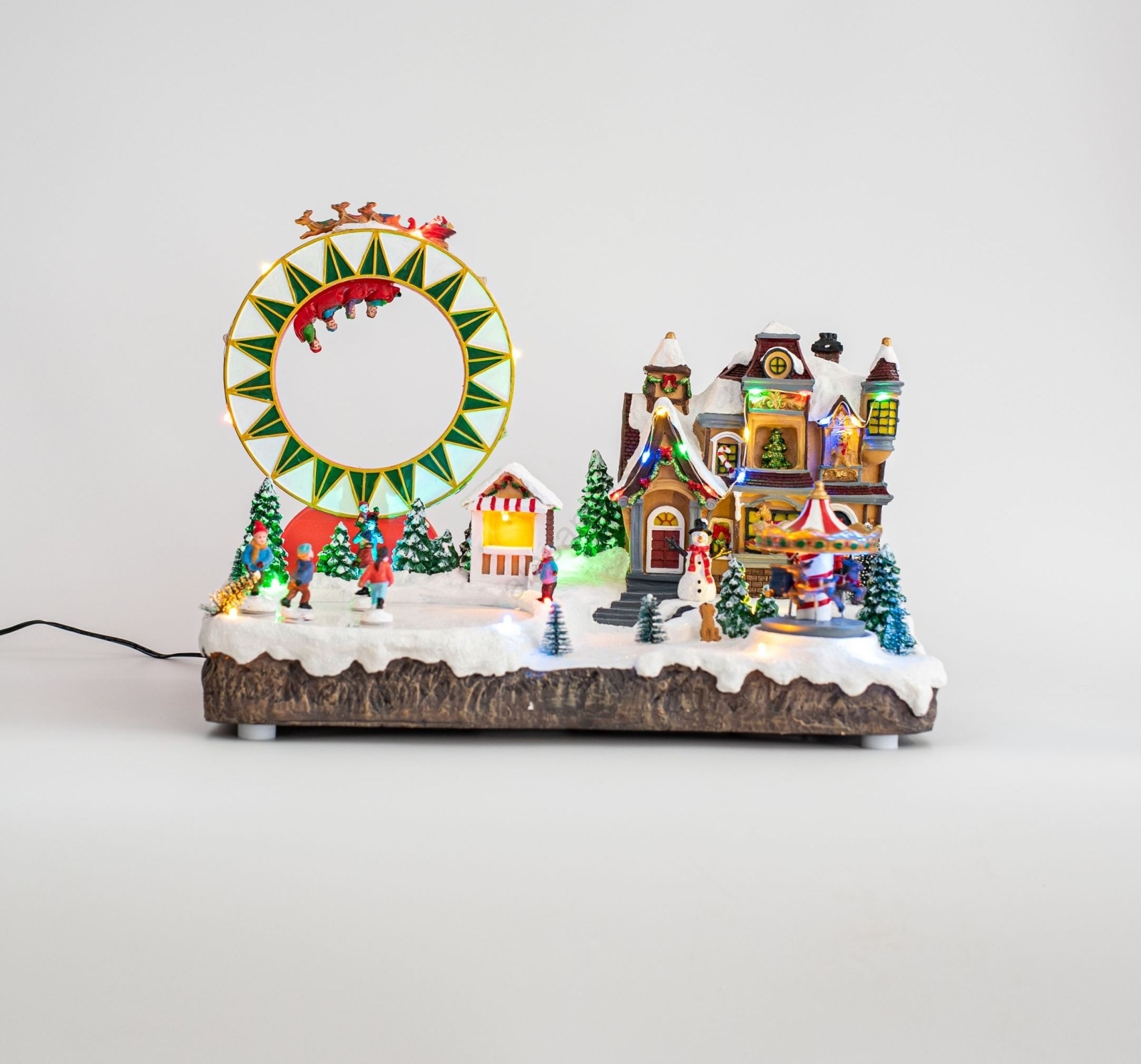 LED RGB božićna pokretna dekoracija uz muziku 30xLED/1,5W/230V zasneženo selo | Alasans