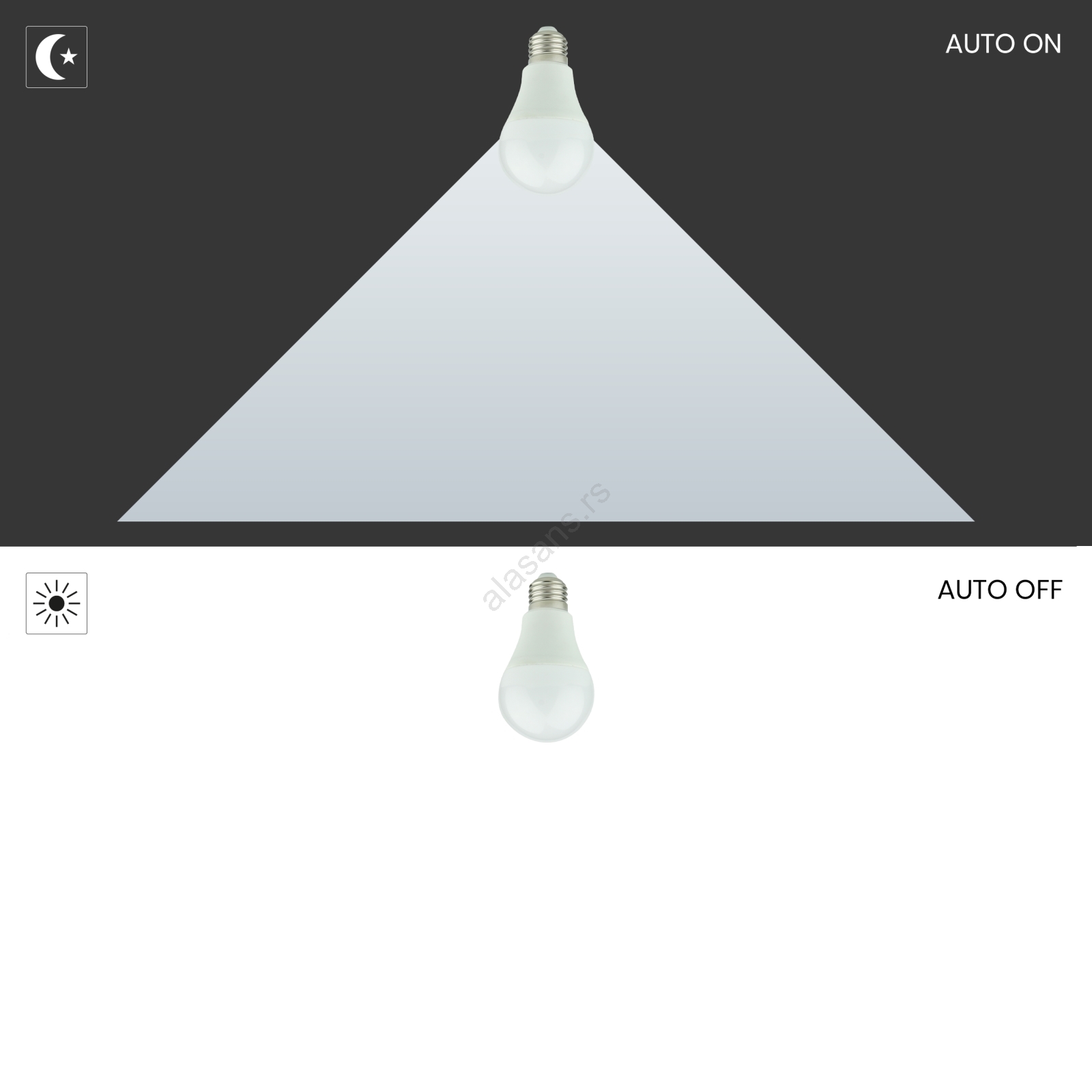 LED sijalica sa senzorom sumraka A60 E27/9W/230V 3000K | Alasans