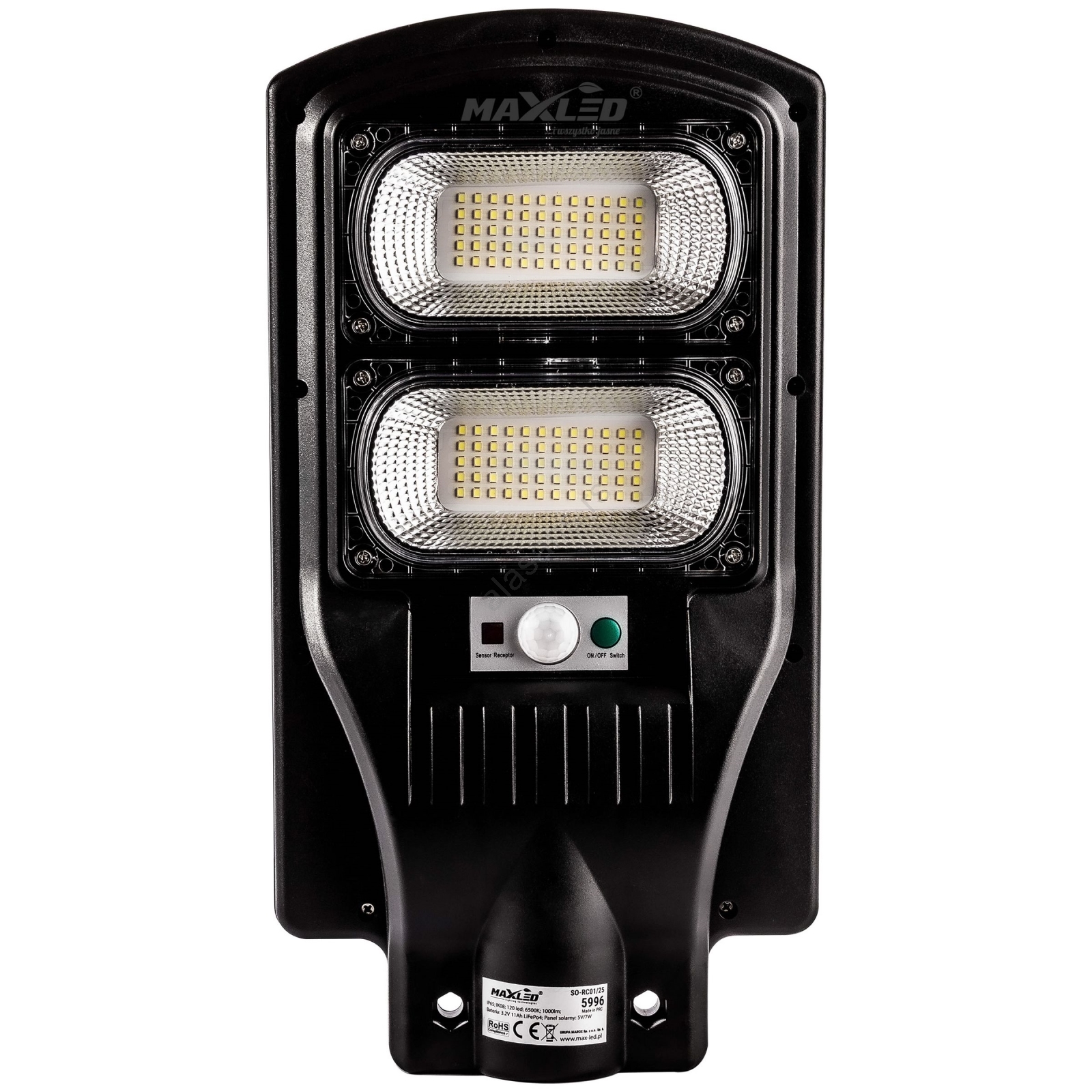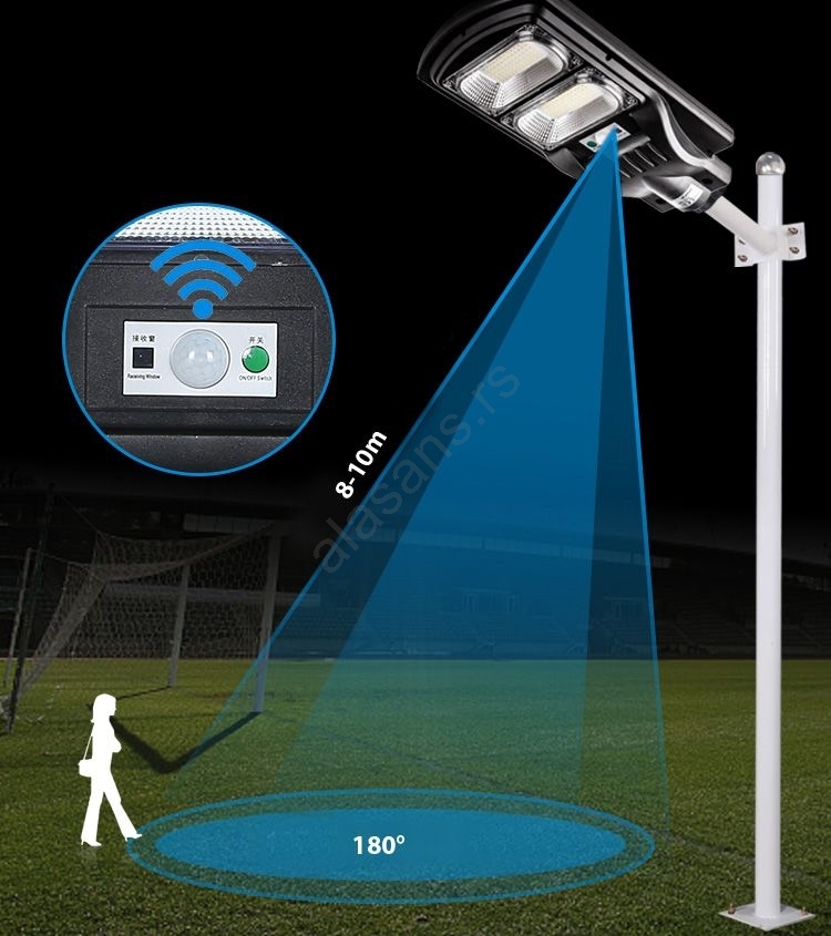 LED solarna ulična lampa sa senzorom, 120W/6V, 6500K, IP65 + daljinski upravljač | Svijet svjetiljki