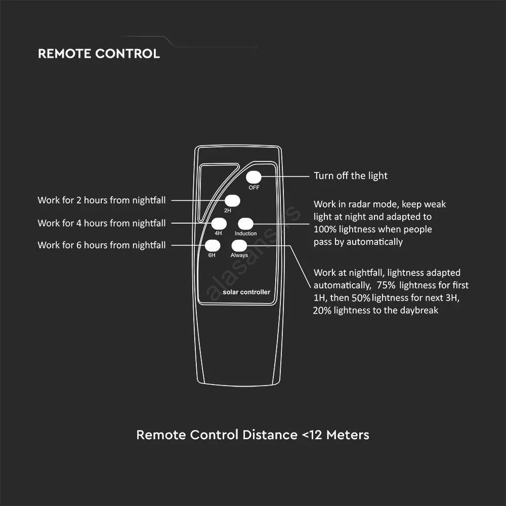 LED solarna ulična lampa sa senzorom LED/7,5W/3,2V IP65 4000K + daljinski upravljač | Alasans