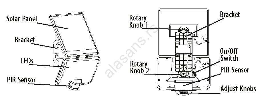 Sadrži infracrveni senzor pokreta i senzor sumraka.